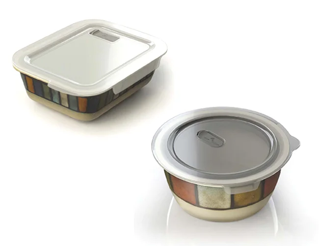 leak proof lid with stoneware container-- from Refrigerator to oven to dining table