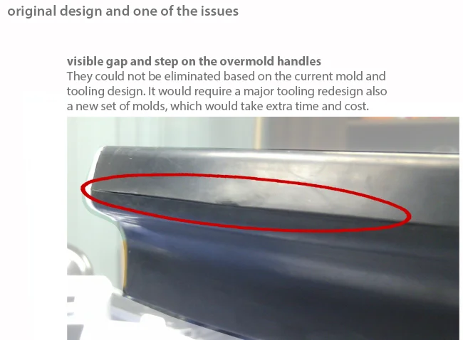 " visible gaps on the overmold handles "